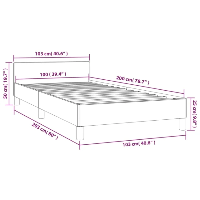 Posteljni okvir - Enojna postelja - Postelja za odrasle z vzglavjem brez vzmetnice 100x200 cm blago