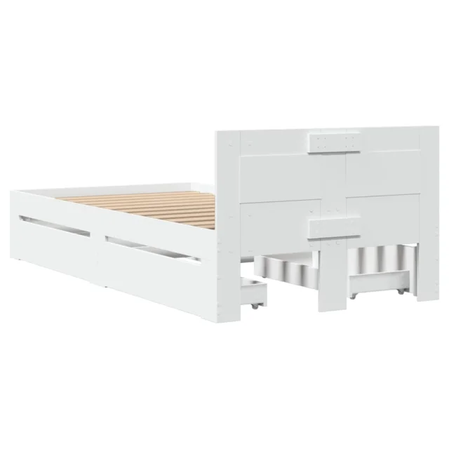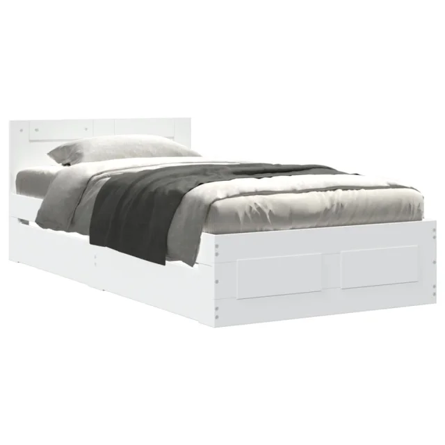Posteljni okvir - Enojna postelja - Postelja za odrasle z vzglavjem brez vzmetnice bel 100x200 cm
