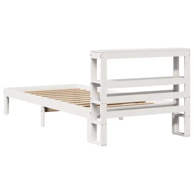 Posteljni okvir - Enojna postelja - Postelja za odrasle z vzglavjem brez vzmetnice bel 90x200 cm