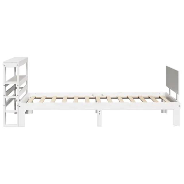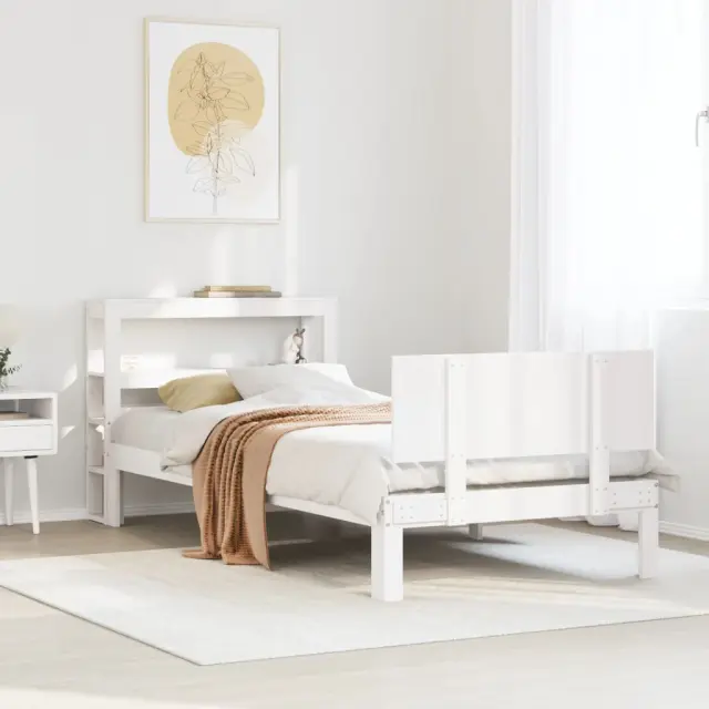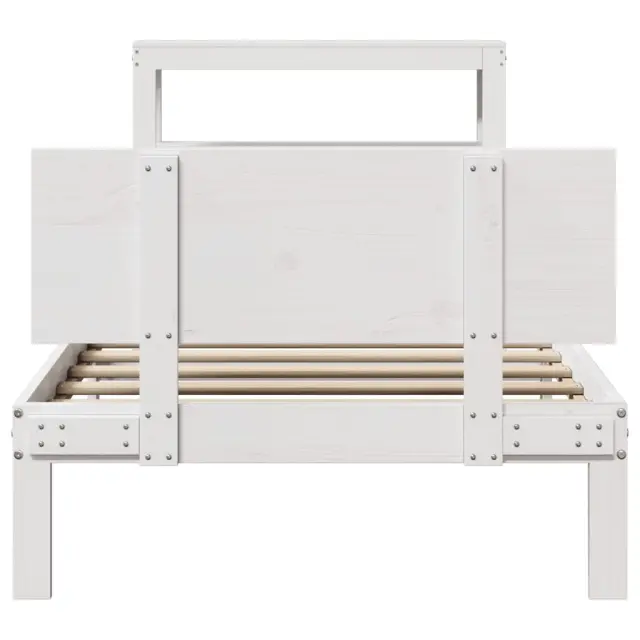 Posteljni okvir - Enojna postelja - Postelja za odrasle z vzglavjem brez vzmetnice bel 90x200 cm