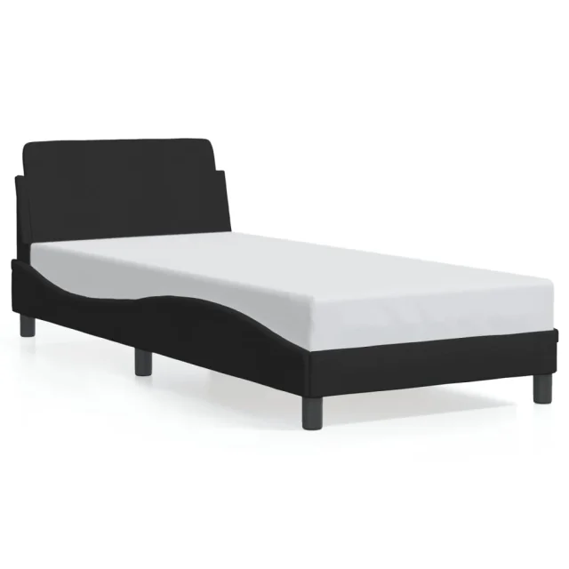 Posteljni okvir - Enojna postelja - Postelja za odrasle z vzglavjem brez vzmetnice črn 80x200 cm blago
