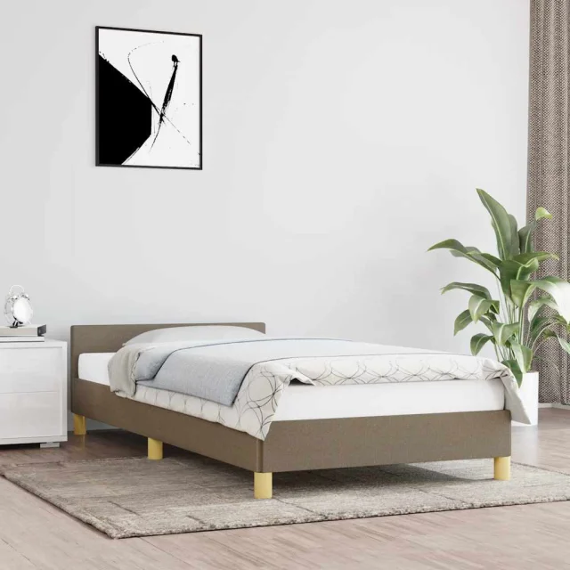 Posteljni okvir - Enojna postelja - Postelja za odrasle z vzglavjem brez vzmetnice taupe 90x190cm blago