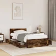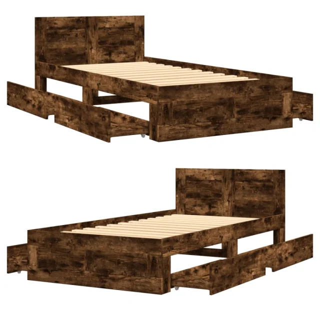 Posteljni okvir - Enojna postelja - Postelja za odrasle z vzglavjem dimljen hrast 90x200 cm inž. les