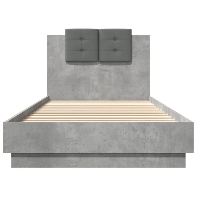 Posteljni okvir - Enojna postelja - Postelja za odrasle z vzglavjem in LED betonsko siv 100x200 cm