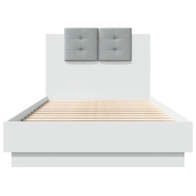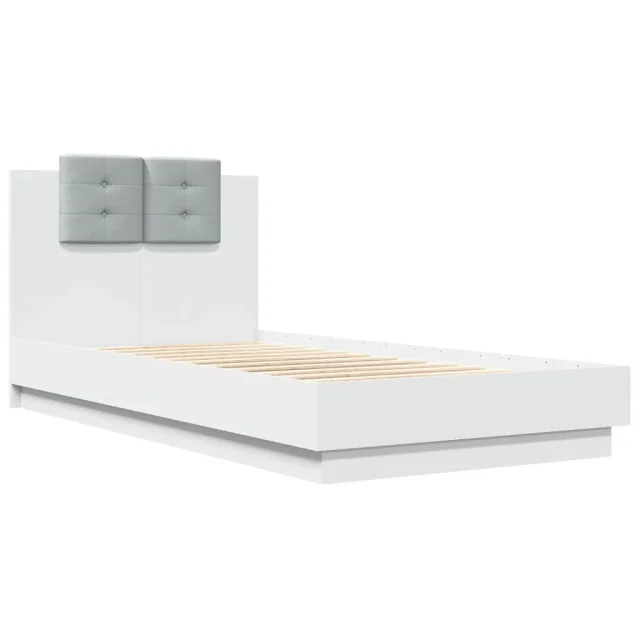 Posteljni okvir - Enojna postelja - Postelja za odrasle z vzglavjem in LED lučkami bela 75x190 cm