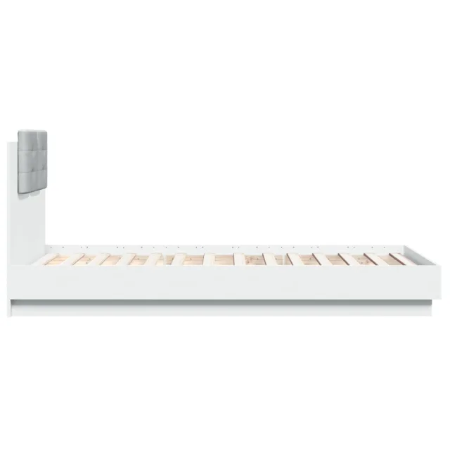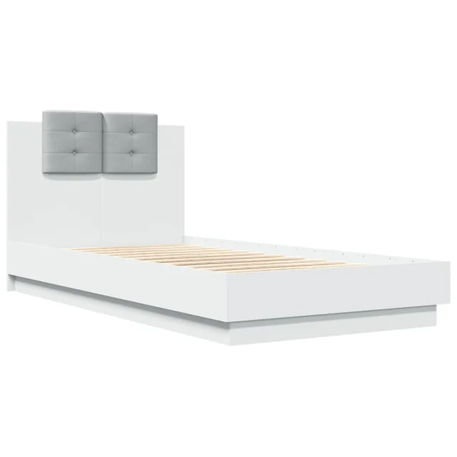 Posteljni okvir - Enojna postelja - Postelja za odrasle z vzglavjem in LED lučkami bela 90x190 cm