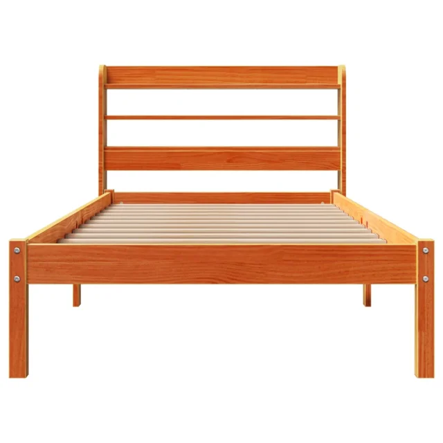 Posteljni okvir - Enojna postelja - Postelja za odrasle z vzglavjem voščeno rjava 75x190 cm borovina