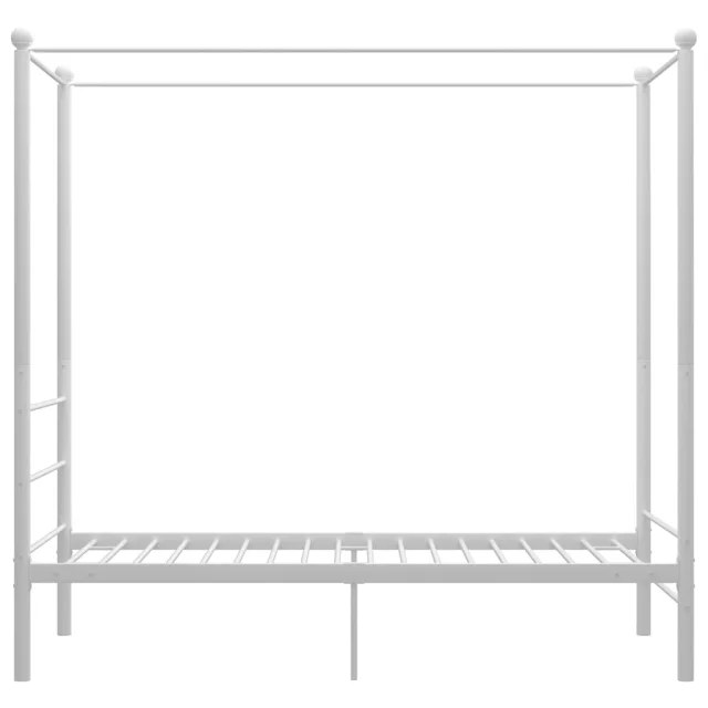 Posteljni okvir - Enojna postelja - Postelja za odrasleji z ogrodjem za baldahin bel kovinski 100x200 cm
