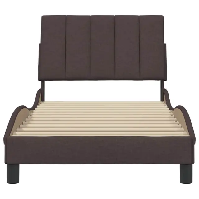 Zagotovite si boljši spanec s tem posteljnim okvirjem! Je prijeten dodatek za vsako spalnico. Mehak in trpežen material: Tkanina iz poliestra ponuja kombinacijo mehkobe, zračnosti in trpežnosti ter vam zagotavlja popolno udobje in prijetnost.Letvice za optimalno podporo: Ta posteljni okvir je opremljen z letvicami, ki zagotavljajo osnovno podporo in zračnost vašega ležišča.Vsestransko vzglavje: Ta posteljni okvir je opremljen z vzglavjem, ki zagotavlja odlično oporo hrbtu, ko sedite v postelji in berete ali gledate televizijo, hkrati pa služi tudi kot dekorativni element.Priročna zasnova: Vzglavna stranica ima zadrgo za preprosto namestitev, pripenjala na zadnji strani pa se lahko uporabijo za pritrditev LED lučk.Valovita stranica: Valoviti videz posteljnega okvirja je eleganten in prefinjen. Dekorju v vašem domu dodaja sodoben in eleganten pridih ter tako postane osrednja točka spalnice. Dobro je vedeti:Vzmetnica ni priložena tej postelji. Ponujamo različno izbiro ležišč. V naši trgovini si lahko ogledate ustrezne vzmetnice.Posteljni okvir:Barva: Temno rjavaMaterial: Tkanina (100 % poliester), kovina, vezan les, inženirski lesCelotne dimenzije: 218 x 95 x 74,5 cm (D x Š x V)Velikost primerne vzmetnice: 90 x 200 cm (Š x D) (vzmetnica ni priložena)Oblazinjeno vzglavje:Barva: Temno rjavaMaterial: Blago (100 % poliester)Material polnila: PP vlaknaDimenzije: 90 x 3 x 45 cm (D x Š x V)Paket vsebuje:1 x Posteljni okvir1 x Oblazinjeno vzglavje