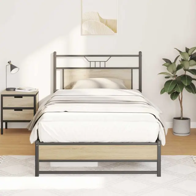 Zagotovite si boljši spanec s tem posteljnim okvirjem! Je prijeten dodatek za vsako spalnico. Stabilen in dolgotrajen okvir: Jeklo je močno, stabilno in trpežno, zato je idealna izbira za številne aplikacije, od proizvodnje pohištva do gradbeništva.Vsestransko vzglavje: Ta postelja je opremljena z vzglavjem, ki zagotavlja odlično oporo hrbtu, ko sedite v postelji in berete ali gledate televizijo, hkrati pa služi tudi kot dekorativni element.Dodaten prostor za shranjevanje: Za udobje ima posteljni podstavek pod seboj dodaten prostor, v katerem lahko shranite škatle za shranjevanje, ki niso vidne.Podnožje z letvami za optimalno podporo: Kovinski posteljni okvir je opremljen z letvenim dnom, ki zagotavlja oporo in zračnost ležišča. Dobro je vedeti:Vzmetnica ni priložena tej postelji. Ponujamo različno izbiro ležišč. V naši trgovini si lahko ogledate ustrezne vzmetnice.Barva: Sonoma hrastMaterial: Inženirski les in jekloCelotne dimenzije: 207 x 113 x 91,5 cm (D x Š x V)Višina prostora pod posteljo: 27 cmPrimerna velikost vzmetnice: 107 x 203 cm (Š x D) (vzmetnica ni priložena)Z vzglavjemPotrebno sestavljanje: Da