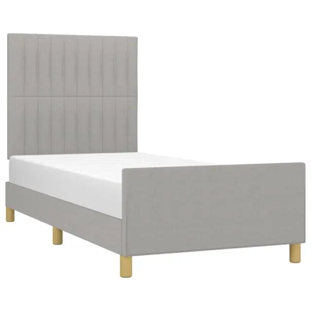 Zagotovite si boljši spanec s tem posteljnim okvirjem z vzglavjem! Je prijeten dodatek za vsako spalnico. Trpežno blago: Blago zagotavlja preprost in čist videz, poleg tega pa je zračno in trpežno.Nastavljiva višina: Vzglavje postelje je nastavljivo po višini po vaših željah.Podporne noge: Postelja je podprta s čvrstimi nogami, ki zagotavljajo njeno stabilnost, varnost in trdnost.Letvice iz vezanega lesa: Letvice iz vezanega lesa omogočajo dobro porazdelitev teže in zagotavljajo, da vzmetnica ostane na mestu ob vsakem zasuku in obračanju med spanjem.Udobna opora: To vzglavje za posteljo vam zagotavlja odlično oporo za hrbet, ko sedite na postelji in berete ali gledate filme. Opomba:Paket vsebuje samo posteljni okvir. Vzmetnica ni priložena. V naši trgovini si lahko ogledate ustrezne vzmetnice.Vsakemu izdelku je priložen priročnik za enostavno sestavljanje.Barva: Svetlo sivaMaterial: Blago (100 % poliester), trden macesnov les, vezan les, inženirski lesMaterial polnila: PenaCelotne dimenzije: 203 x 93 x 118/128 cm (D x Š x V)Velikost primerne vzmetnice: 90 x 200 cm (Š x D) (vzmetnica ni priložena)Paket vsebuje:1 x Posteljni okvir z vznožjem1 x Vzglavje