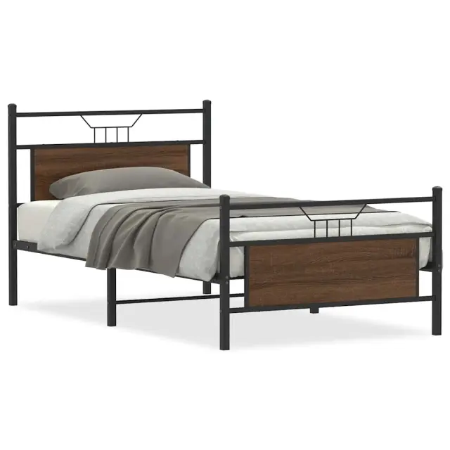 Posteljni okvir - Enojna postelja - Postelja za odrasle brez vzmetnice rjavi hrast 107x203 cm inž. les-J12319