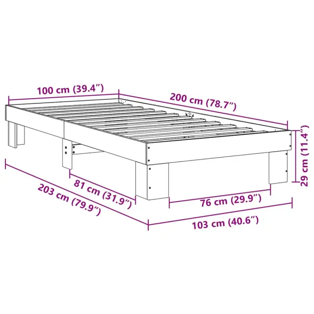 Posteljni okvir - Enojna postelja - Postelja za odrasle brez vzmetnice 100x200 cm masivni les hrast-J6477