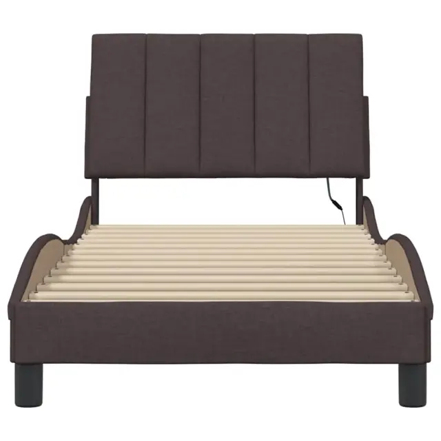 S tem posteljnim okvirjem z vzglavnikom si zagotovite mirnejši spanec! Trpežno blago: Blago zagotavlja preprost in čist videz, poleg tega pa je zračno in trpežno.Podporne noge: Postelja je podprta s čvrstimi nogami, ki zagotavljajo njeno stabilnost, varnost in trdnost.Letvice iz vezanega lesa: Letvice iz vezanega lesa omogočajo dobro porazdelitev teže in zagotavljajo, da vzmetnica ostane na mestu ob vsakem zasuku in obračanju med spanjem.Odlična podpora: Vzglavna stranica je napolnjena s PP vlakni za izjemno mehkobo in optimalno udobje ter zagotavlja odlično podporo hrbtu, ko sedite v postelji in berete ali gledate televizijo.LED osvetlitev za prijeten ambient: To posteljo odlikuje LED osvetlitev, ki jo je mogoče preprosto nastaviti in tako ustvariti posebno svetlobno predstavo. Prilagodite lahko načine, barve in svetlost ter tako izboljšate vzdušje v notranjem prostoru. Dobro je vedeti:Vzmetnica ni priložena tej postelji. Ponujamo različno izbiro ležišč. V naši trgovini si lahko ogledate ustrezne vzmetnice.Izdelek ima priključek USB, ki zahteva certificiran vir napajanja 5 V USB (ni priložen).Režete lahko samo del s simbolom škarij in samo del z USB bo deloval kot prej.Posteljni okvir:Barva: Temno rjavaMaterial: Tkanina (100 % poliester), kovina, vezan les, inženirski lesCelotne dimenzije: 218 x 95 x 74,5 cm (D x Š x V)Velikost primerne vzmetnice: 90 x 200 cm (Š x D) (vzmetnica ni priložena)Potrebno sestavljanje: DaOblazinjeno vzglavje:Barva: Temno rjavaMaterial: Blago (100 % poliester)Material polnila: PP vlaknaDimenzije: 90 x 3 x 45 cm (D x Š x V)LED trak s silikonsko cevjo in pipo:Dolžina: 55 cmNapetost: DC 5 VDolžina kabla USB : 150 cmDolžina električnega kabla: 30 cmIP ocena: IP65S simbolom za rezanje s škarjamiPaket vsebuje:1 x Posteljni okvir1 x Oblazinjeno vzglavje1 x LED trak Vir svetlobe tega izdelka ni zamenljiv. Ko vir svetlobe doseže konec življenjske dobe, izdelek zamenjajte. Samo za notranjo uporabo, ne uporabljajte tega izdelka na prostem. Izdelek ima USB priključek, vendar certificiranega 5V USB napajalnika ni priloženega. Prosimo, uporabite samo certificiran DC 5V vhod. Višja napetost lahko povzroči pregrevanje, kar lahko povzroči poškodbe naprave in potencialno nevarnost pregrevanja in požara. Fleksibilnega kabla nizkonapetostnih luči ni mogoče zamenjati, in ne uporabljajte nizkonapetostnih luči, če je kabel poškodovan. Ne povežite LED svetilke s certificiranim 5V USB napajalnikom med namestitvijo in vzdrževanjem. Te naprave ne smejo uporabljati otroci, mlajši od 14 let, in osebe z zmanjšanimi fizičnimi, čutnimi ali duševnimi sposobnostmi ali pomanjkanjem izkušenj in znanja. NE upoštevajte tega izdelka v prisotnosti eksplozivnih snovi, kot so vnetljivi tekočine, plini in prah ali pri ekstremnih temperaturah nad 50 stopinjami Celzija.