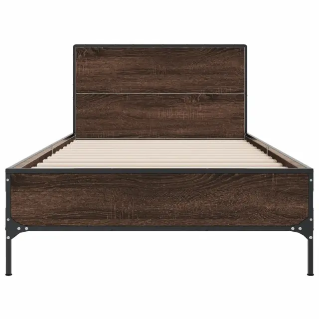 Posteljni okvir - Enojna postelja - Postelja za odrasle rjav hrast 100x200 cm inženirski les in kovina-J8870