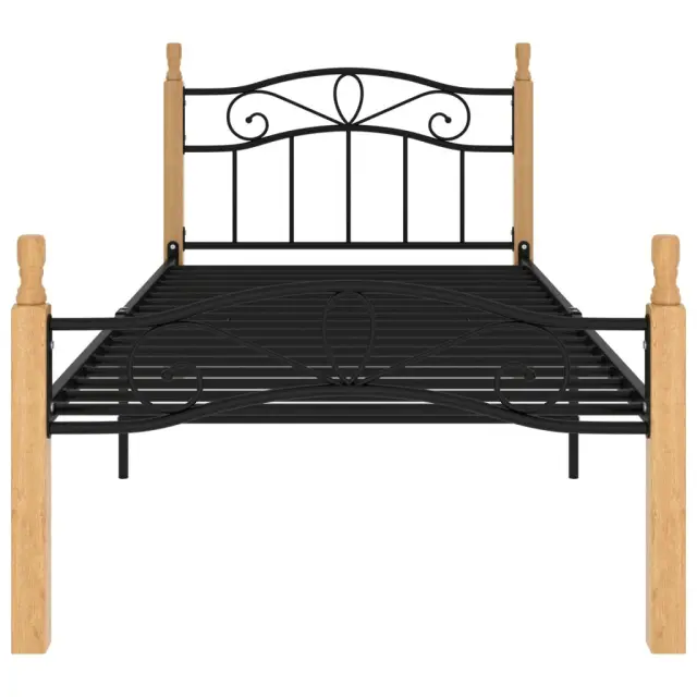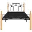 Posteljni okvir - Enojna postelja - Postelja za odrasle črna kovina in trdna hrastovina 90x200 cm-J8544