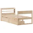 Zagotovite si boljši spanec s tem posteljnim okvirjem! Je prijeten dodatek za vsako spalnico. Stabilen in dolgotrajen okvir: Trdna borovina je znana po svoji trdnosti in trajnosti. Ravni vzorci in značilni vozli prispevajo k njenemu rustikalnemu čaru.Podnožje z letvami za optimalno podporo: Za podporo in zračnost ležišča je posteljni okvir opremljen z letvenim dnom.Popolnoma izkoriščen prostor: Ta posteljni okvir ima spodaj dva predala, ki omogočata shranjevanje predmetov, kot so dodatna posteljnina, sezonska oblačila in igrače.Veliko prostora za shranjevanje: To elegantno posteljno vzglavje ima tri priročne police, ki ponujajo veliko prostora za shranjevanje, da bodo vaše večerne potrebščine na dosegu roke.Samostoječe vzglavje: Samostoječe vzglavje ponuja brezskrbno rešitev za enostavno postavitev in premikanje brez potrebe po vgradnji na steno. Dobro je vedeti:Vzmetnica ni priložena tej postelji. Ponujamo različno izbiro ležišč. V naši trgovini si lahko ogledate ustrezne vzmetnice.Material: Trdna borovina (neobdelana)Material letvic: Vezan lesCelotne dimenzije: 208 x 100 x 82 cm (D x Š x V)Velikost primerne vzmetnice: 90 x 190 cm (Š x D) (vzmetnica ni priložena)Dimenzije predala: 90,5 x 47 x 25,5 cm (D x Š x V)S policami za shranjevanjePotrebno sestavljanje: Da Paket vsebuje:1 x Posteljni okvir1 x Vzglavje2 x Predal