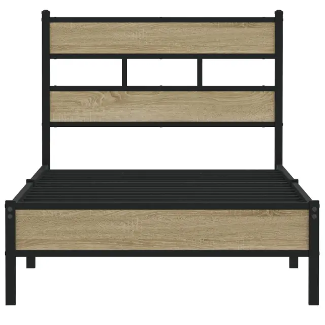 Če iščete trpežen posteljni okvir za svojo spalnico, je ta klasični posteljni okvir z elegantnim in brezčasnim dizajnom popolna izbira!Robustna kovinska konstrukcija: Okvir postelje je izdelan iz jekla. Jeklo je izjemno trd in močan material, ki zagotavlja izjemno trdnost in stabilnost.Kovinske letvice in noge: Kovinski posteljni okvir je opremljen s kovinskimi letvami in sredinskimi nogami, ki ležišču nudijo nujno potrebno oporo in zračnost.Dodaten prostor za shranjevanje: Za vaše udobje ima postelja za goste pod seboj tudi dodaten prostor, da vaše škatle za shranjevanje ne bodo vidne.Odlična opora: Vzglavje zagotavlja odlično oporo hrbtu, ko sedite v postelji in berete ali gledate televizijo.Dobro je vedeti:Vzmetnica ni priložena tej postelji. Ponujamo različno izbiro ležišč. V naši trgovini si lahko ogledate ustrezne vzmetnice.Za čim lažjo montažo je vsakemu izdelku priložen priročnik.Barva: Sonoma hrastMaterial: Jeklo, inženirski lesCelotne dimenzije: 196 x 105 x 91,5 cm (D x Š x V)Višina prostora pod posteljo: 28 cmVelikost primerne vzmetnice: 100 x 190 cm (Š x D) (vzmetnica ni priložena)Potrebno sestavljanje: Da