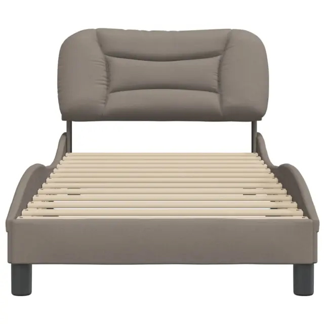 Zagotovite si boljši spanec s tem posteljnim okvirjem z vzglavjem! Je prijeten dodatek za vsako spalnico. Tkanina z dolgo življenjsko dobo: Tkanina je preprostega in čistega videza, hkrati pa je zračna, prijazna do kože in vzdržljiva.Letvice iz vezanega lesa: Letvice iz vezanega lesa omogočajo dobro porazdelitev teže in zagotavljajo, da vzmetnica ostane na mestu ob vsakem zasuku in obračanju med spanjem.Odlična podpora: Vzglavna stranica je napolnjena s PP vlakni za izjemno mehkobo in optimalno udobje ter zagotavlja odlično podporo hrbtu, ko sedite v postelji in berete ali gledate televizijo.Priročna zasnova: Vzglavna stranica ima zadrgo za preprosto namestitev, pripenjala na zadnji strani pa se lahko uporabijo za pritrditev LED lučk.Valovita stranica: Valoviti videz posteljnega okvirja je eleganten in prefinjen. Dekorju v vašem domu dodaja sodoben in eleganten pridih ter tako postane osrednja točka spalnice. Dobro je vedeti:Vzmetnica ni priložena tej postelji. Ponujamo različno izbiro ležišč. V naši trgovini si lahko ogledate ustrezne vzmetnice.Posteljni okvir z vzglavjem:Barva: TaupeMaterial: Tkanina (100 % poliester), kovina, trdna borovina, vezan les, inženirski lesCelotne dimenzije: 218 x 95 x 74,5 cm (D x Š x V)Velikost primerne vzmetnice: 90 x 200 cm (Š x D) (vzmetnica ni priložena)Oblazinjeno vzglavje:Barva: TaupeMaterial: Blago (100 % poliester)Material polnila: PP vlaknaDimenzije: 100 x 15 x 48 cm (D x Š x V)Primerna širina vzmetnice: 90 cmPotrebno sestavljanje: DaPaket vsebuje:1 x Posteljni okvir z vzglavjem1 x Oblazinjeno vzglavje