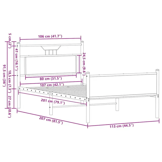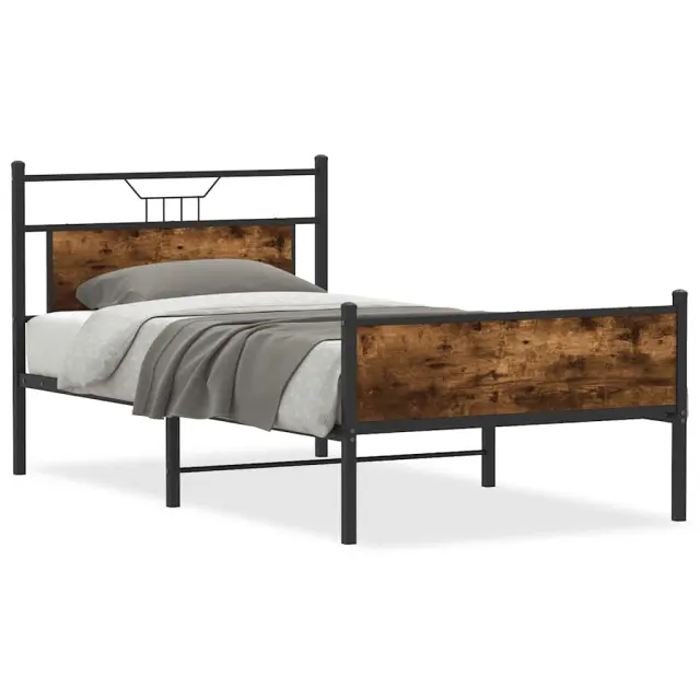 Zagotovite si boljši spanec s tem posteljnim okvirjem! Je prijeten dodatek za vsako spalnico. Stabilen in dolgotrajen okvir: Jeklo je močno, stabilno in trpežno, zato je idealna izbira za številne aplikacije, od proizvodnje pohištva do gradbeništva.Funkcionalno vzglavje in podnožje: Vzglavje in podnožje posteljnega dna ohranjata ležišče na mestu. Poleg tega vzglavje zagotavlja odlično oporo hrbtu, ko sedite v postelji in berete ali gledate televizijo.Dodaten prostor za shranjevanje: Za udobje ima posteljni podstavek pod seboj dodaten prostor, v katerem lahko shranite škatle za shranjevanje, ki niso vidne.Podnožje z letvami za optimalno podporo: Kovinski posteljni okvir je opremljen z letvenim dnom, ki zagotavlja oporo in zračnost ležišča. Dobro je vedeti:Vzmetnica ni priložena tej postelji. Ponujamo različno izbiro ležišč. V naši trgovini si lahko ogledate ustrezne vzmetnice.Barva: Dimljeni hrastMaterial: Inženirski les in jekloCelotne dimenzije: 207 x 113 x 91,5 cm (D x Š x V)Višina prostora pod posteljo: 27 cmPrimerna velikost vzmetnice: 107 x 203 cm (Š x D) (vzmetnica ni priložena)Z vzglavjem in podnožjemPotrebno sestavljanje: Da