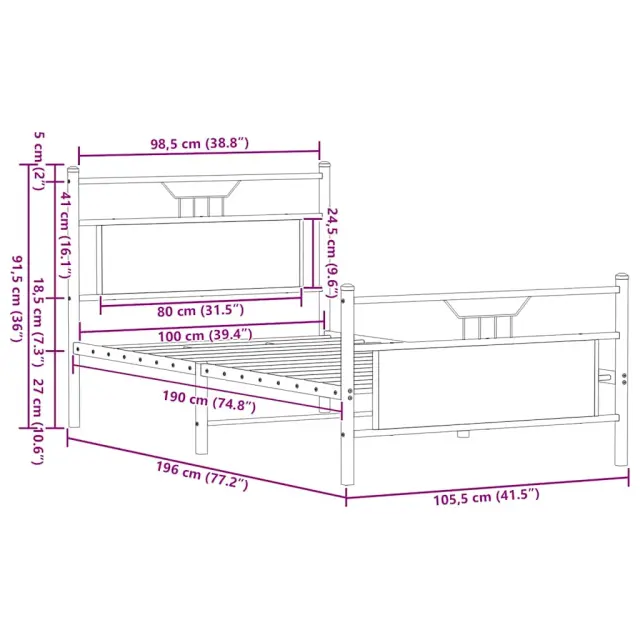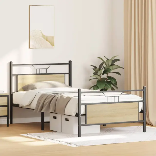 Zagotovite si boljši spanec s tem posteljnim okvirjem! Je prijeten dodatek za vsako spalnico. Stabilen in dolgotrajen okvir: Jeklo je močno, stabilno in trpežno, zato je idealna izbira za številne aplikacije, od proizvodnje pohištva do gradbeništva.Funkcionalno vzglavje in podnožje: Vzglavje in podnožje posteljnega dna ohranjata ležišče na mestu. Poleg tega vzglavje zagotavlja odlično oporo hrbtu, ko sedite v postelji in berete ali gledate televizijo.Dodaten prostor za shranjevanje: Za udobje ima posteljni podstavek pod seboj dodaten prostor, v katerem lahko shranite škatle za shranjevanje, ki niso vidne.Podnožje z letvami za optimalno podporo: Kovinski posteljni okvir je opremljen z letvenim dnom, ki zagotavlja oporo in zračnost ležišča. Dobro je vedeti:Vzmetnica ni priložena tej postelji. Ponujamo različno izbiro ležišč. V naši trgovini si lahko ogledate ustrezne vzmetnice.Barva: Sonoma hrastMaterial: Inženirski les in jekloCelotne dimenzije: 196 x 105,5 x 91,5 cm (D x Š x V)Višina prostora pod posteljo: 27 cmVelikost primerne vzmetnice: 100 x 190 cm (Š x D) (vzmetnica ni priložena)Z vzglavjem in podnožjemPotrebno sestavljanje: Da