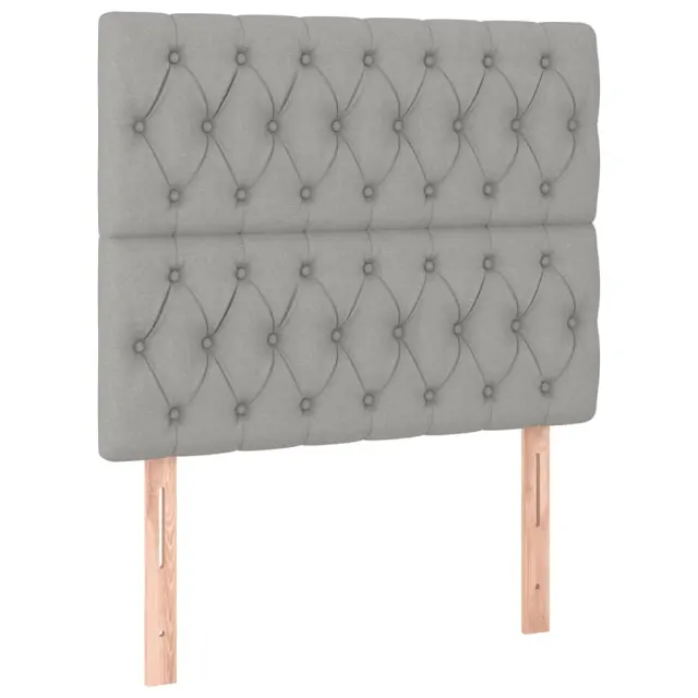 Zagotovite si boljši spanec s tem posteljnim okvirjem z vzglavjem! Je prijeten dodatek za vsako spalnico. Trpežno blago: Blago zagotavlja preprost in čist videz, poleg tega pa je zračno in trpežno.Nastavljiva višina: Vzglavje postelje je nastavljivo po višini po vaših željah.Podporne noge: Postelja je podprta s čvrstimi nogami, ki zagotavljajo njeno stabilnost, varnost in trdnost.Letvice iz vezanega lesa: Letvice iz vezanega lesa omogočajo dobro porazdelitev teže in zagotavljajo, da vzmetnica ostane na mestu ob vsakem zasuku in obračanju med spanjem.Udobna opora: To vzglavje za posteljo vam zagotavlja odlično oporo za hrbet, ko sedite na postelji in berete ali gledate filme. Opomba:Paket vsebuje samo posteljni okvir. Vzmetnica ni priložena. V naši trgovini si lahko ogledate ustrezne vzmetnice.Vsakemu izdelku je priložen priročnik za enostavno sestavljanje.Barva: Svetlo sivaMaterial: Blago (100 % poliester), trden macesnov les, vezan les, inženirski lesMaterial polnila: PenaCelotne dimenzije: 203 x 93 x 118/128 cm (D x Š x V)Velikost primerne vzmetnice: 90 x 200 cm (Š x D) (vzmetnica ni priložena)Paket vsebuje:1 x Posteljni okvir z vznožjem1 x Vzglavje