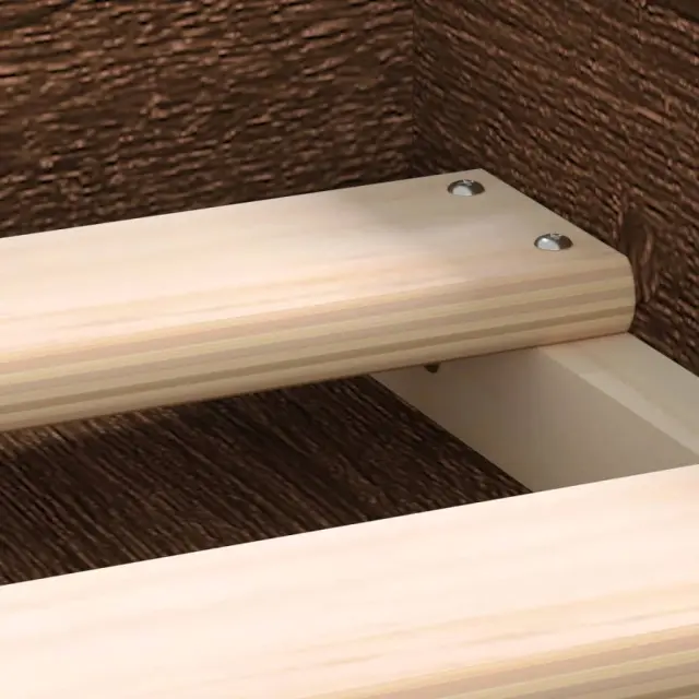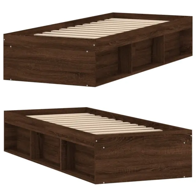 Ustvarite moderno spalnico s tem posteljnim okvirjem! To bo praktičen in okrasen dodatek za vaše notranje prostore. Vzdržljiv material: Inženirski les se ponaša z izjemno kakovostjo, gladko površino ter močjo, stabilnostjo in odpornostjo na vlago.Letvice iz vezanega lesa: Letvice iz vezanega lesa omogočajo dobro porazdelitev teže in zagotavljajo, da vzmetnica ostane na mestu ob vsakem zasuku in obračanju med spanjem.Dodaten prostor za shranjevanje: Postelja za goste ima skupno 6 predelkov na obeh straneh postelje za shranjevanje stvari, kot so knjige, lončnice in drugi okraski. Dobro je vedeti:Vzmetnica ni priložena tej postelji. Ponujamo različno izbiro ležišč. V naši trgovini si lahko ogledate ustrezne vzmetnice.Barva: Rjav hrastMaterial posteljnega okvirja: Inženirski les, trdna borovinaMaterial letvic: Vezan lesCelotne dimenzije: 193 x 78 x 35 cm (D x Š x V)Primerna velikost vzmetnice (vzmetnica ni vključena): 75 x 190 cm (Š x D) (2FT6 Small Single)Potrebno sestavljanje: Da