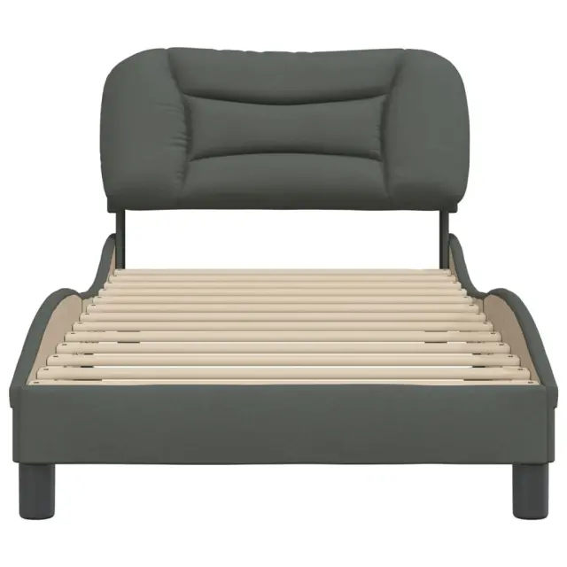 Zagotovite si boljši spanec s tem posteljnim okvirjem z vzglavjem! Je prijeten dodatek za vsako spalnico. Tkanina z dolgo življenjsko dobo: Tkanina je preprostega in čistega videza, hkrati pa je zračna, prijazna do kože in vzdržljiva.Letvice iz vezanega lesa: Letvice iz vezanega lesa omogočajo dobro porazdelitev teže in zagotavljajo, da vzmetnica ostane na mestu ob vsakem zasuku in obračanju med spanjem.Odlična podpora: Vzglavna stranica je napolnjena s PP vlakni za izjemno mehkobo in optimalno udobje ter zagotavlja odlično podporo hrbtu, ko sedite v postelji in berete ali gledate televizijo.Priročna zasnova: Vzglavna stranica ima zadrgo za preprosto namestitev, pripenjala na zadnji strani pa se lahko uporabijo za pritrditev LED lučk.Valovita stranica: Valoviti videz posteljnega okvirja je eleganten in prefinjen. Dekorju v vašem domu dodaja sodoben in eleganten pridih ter tako postane osrednja točka spalnice. Dobro je vedeti:Vzmetnica ni priložena tej postelji. Ponujamo različno izbiro ležišč. V naši trgovini si lahko ogledate ustrezne vzmetnice.Posteljni okvir z vzglavjem:Barva: Temno sivaMaterial: Tkanina (100 % poliester), kovina, trdna borovina, vezan les, inženirski lesCelotne dimenzije: 218 x 85 x 74,5 cm (D x Š x V)Velikost primerne vzmetnice: 80 x 200 cm (Š x D) (vzmetnica ni priložena)Oblazinjeno vzglavje:Barva: Temno sivaMaterial: Blago (100 % poliester)Material polnila: PP vlaknaDimenzije: 90 x 15 x 48 cm (D x Š x V)Širina primerne vzmetnice: 80 cmPotrebno sestavljanje: DaPaket vsebuje:1 x Posteljni okvir z vzglavjem1 x Oblazinjeno vzglavje
