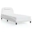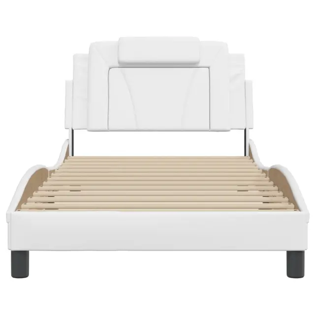 Zagotovite si boljši spanec s tem posteljnim okvirjem z vzglavjem! Je prijeten dodatek za vsako spalnico. Trpežno umetno usnje: Vrhunsko umetno usnje je zelo vzdržljiv material. Je odporno na madeže, zato ga lahko preprosto čistite z vlažno krpo. Gladka površina mu prav tako daje razkošen videz in lepoto pravega usnja.Letvice iz vezanega lesa: Letvice iz vezanega lesa omogočajo dobro porazdelitev teže in zagotavljajo, da vzmetnica ostane na mestu ob vsakem zasuku in obračanju med spanjem.Odlična podpora: Vzglavna stranica je napolnjena s peno za izjemno mehkobo in optimalno udobje ter zagotavlja odlično podporo hrbtu, ko sedite v postelji in berete ali gledate televizijo.Valovita stranica: Valoviti videz posteljnega okvirja je eleganten in prefinjen. Dekorju v vašem domu dodaja sodoben in eleganten pridih ter tako postane osrednja točka spalnice. Dobro je vedeti:Vzmetnica ni priložena tej postelji. Ponujamo različno izbiro ležišč. V naši trgovini si lahko ogledate ustrezne vzmetnice.Posteljni okvir z vzglavjem:Barva: BelaMaterial: Umetno usnje (75 % polivinilklorid, 5 % bombaž, 20 % poliester), kovina, trdna borovina, vezan lesCelotne dimenzije: 218 x 105 x 74,5 cm (D x Š x V)Velikost primerne vzmetnice: 100 x 200 cm (Š x D) (vzmetnica ni priložena)Oblazinjeno vzglavje:Barva: BelaMaterial: Umetno usnje (75 % polivinilklorid, 5 % bombaž, 20 % poliester)Material polnila: PenaDimenzije: 100 x 15 x 49 cm (D x Š x V)Širina primerne vzmetnice: 100 cmPotrebno sestavljanje: DaPaket vsebuje:1 x Posteljni okvir z vzglavjem1 x Oblazinjeno vzglavje