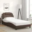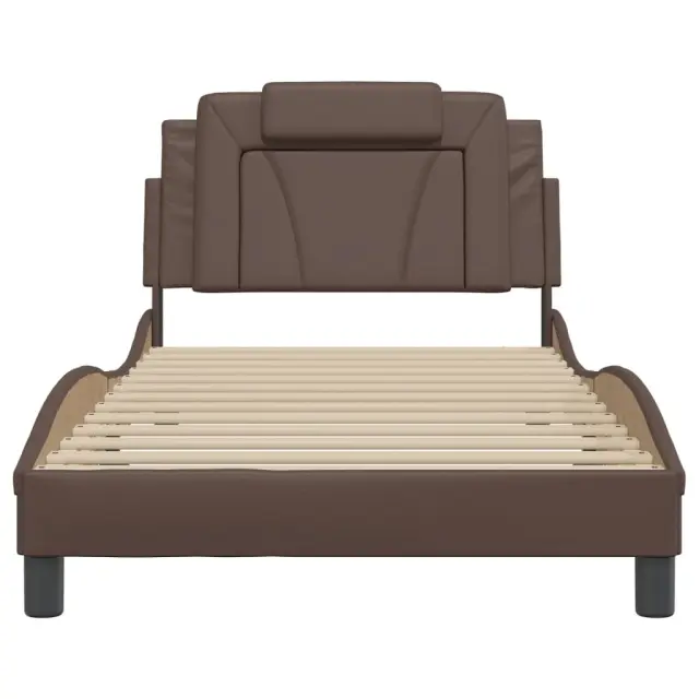Zagotovite si boljši spanec s tem posteljnim okvirjem z vzglavjem! Je prijeten dodatek za vsako spalnico. Trpežno umetno usnje: Vrhunsko umetno usnje je zelo vzdržljiv material. Je odporno na madeže, zato ga lahko preprosto čistite z vlažno krpo. Gladka površina mu prav tako daje razkošen videz in lepoto pravega usnja.Letvice iz vezanega lesa: Letvice iz vezanega lesa omogočajo dobro porazdelitev teže in zagotavljajo, da vzmetnica ostane na mestu ob vsakem zasuku in obračanju med spanjem.Odlična podpora: Vzglavna stranica je napolnjena s peno za izjemno mehkobo in optimalno udobje ter zagotavlja odlično podporo hrbtu, ko sedite v postelji in berete ali gledate televizijo.Valovita stranica: Valoviti videz posteljnega okvirja je eleganten in prefinjen. Dekorju v vašem domu dodaja sodoben in eleganten pridih ter tako postane osrednja točka spalnice. Dobro je vedeti:Vzmetnica ni priložena tej postelji. Ponujamo različno izbiro ležišč. V naši trgovini si lahko ogledate ustrezne vzmetnice.Posteljni okvir z vzglavjem:Barva: RjavaMaterial: Umetno usnje (75 % polivinilklorid, 5 % bombaž, 20 % poliester), kovina, trdna borovina, vezan lesCelotne dimenzije: 218 x 105 x 74,5 cm (D x Š x V)Velikost primerne vzmetnice: 100 x 200 cm (Š x D) (vzmetnica ni priložena)Oblazinjeno vzglavje:Barva: RjavaMaterial: Umetno usnje (75 % polivinilklorid, 5 % bombaž, 20 % poliester)Material polnila: PenaDimenzije: 100 x 15 x 49 cm (D x Š x V)Širina primerne vzmetnice: 100 cmPotrebno sestavljanje: DaPaket vsebuje:1 x Posteljni okvir z vzglavjem1 x Oblazinjeno vzglavje