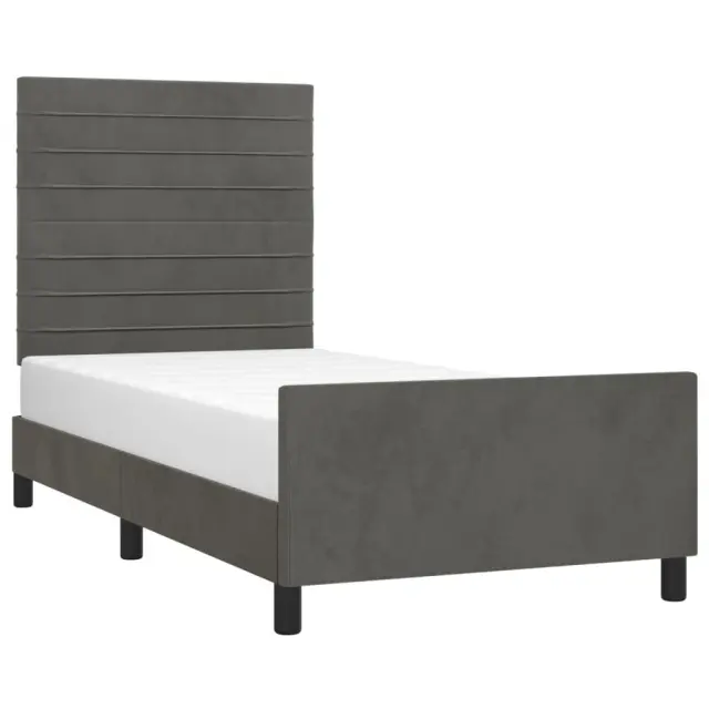 Zagotovite si boljši spanec s tem posteljnim okvirjem z vzglavjem! Je prijeten dodatek za vsako spalnico. Mehak žamet: Žamet je mehka in razkošna tkanina, ki jo prepoznamo po gostem kupu enakomerno rezanih gladkih vlaken. Žametna tkanina ima značilen mehak občutek, zaradi česar je prijetna na dotik.Nastavljiva višina: Vzglavje postelje je nastavljivo po višini po vaših željah.Podporne noge: Postelja je podprta s čvrstimi nogami, ki zagotavljajo njeno stabilnost, varnost in trdnost.Letvice iz vezanega lesa: Letvice iz vezanega lesa omogočajo dobro porazdelitev teže in zagotavljajo, da vzmetnica ostane na mestu ob vsakem zasuku in obračanju med spanjem.Udobna opora: To vzglavje za posteljo vam zagotavlja odlično oporo za hrbet, ko sedite na postelji in berete ali gledate filme. Opomba:Paket vsebuje samo posteljni okvir. Vzmetnica ni priložena. V naši trgovini si lahko ogledate ustrezne vzmetnice.Vsakemu izdelku je priložen priročnik za enostavno sestavljanje.Barva: Temno sivaMaterial: Žamet (100 % poliester), trden macesnov les, vezan les, inženirski lesMaterial polnila: PenaCelotne dimenzije: 203 x 103 x 118/128 cm (D x Š x V)Velikost primerne vzmetnice: 100 x 200 cm (Š x D) (vzmetnica ni priložena)Paket vsebuje:1 x Posteljni okvir z vznožjem1 x Vzglavje