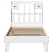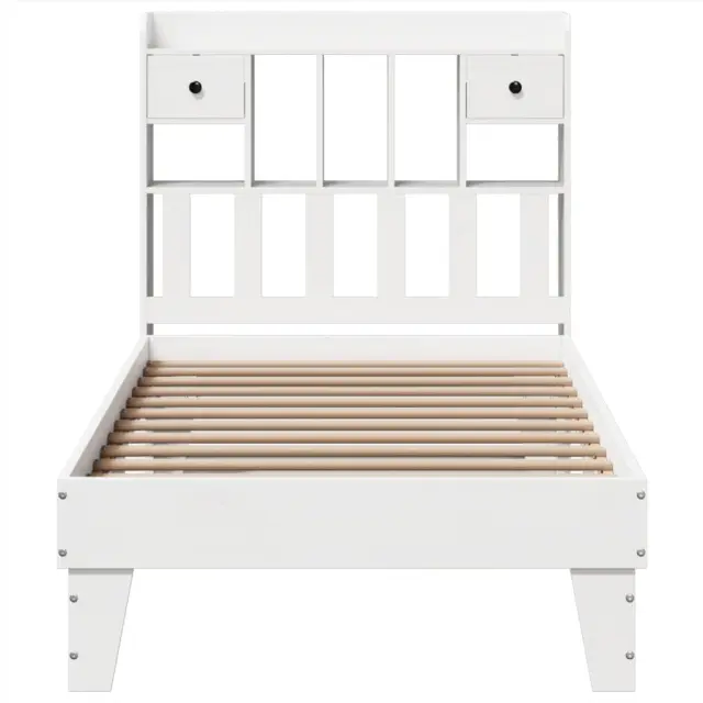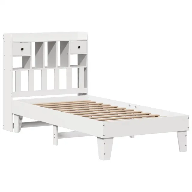 Zagotovite si boljši spanec s tem posteljnim okvirjem! Je prijeten dodatek za vsako spalnico. Stabilen in dolgotrajen okvir: Trdna borovina je znana po svoji trdnosti in trajnosti. Ravni vzorci in značilni vozli prispevajo k njenemu rustikalnemu čaru.Podnožje z letvami za optimalno podporo: Za podporo in zračnost ležišča je posteljni okvir opremljen z letvenim dnom.Dodaten prostor za shranjevanje: To elegantno vzglavje ima 3 priročne predelke in 2 predala, ki nudijo dovolj prostora za shranjevanje, da so vse vaše nočne potrebščine na dosegu roke. Za večje udobje je pod leseno posteljo dodaten prostor, v katerem lahko shranite škatle za shranjevanje, da bodo lepo skrite.Stabilne in vzdržljive noge: Ta postelja je podprta z robustnimi nogami, ki zagotavljajo stabilnost, varnost in trdnost.Samostoječe vzglavje: Samostoječe vzglavje ponuja brezskrbno rešitev za enostavno postavitev in premikanje brez potrebe po vgradnji na steno. Dobro je vedeti:Vzmetnica ni priložena tej postelji. Ponujamo različno izbiro ležišč. V naši trgovini si lahko ogledate ustrezne vzmetnice.Barva: BelaMaterial: Trdna borovinaMaterial letvic: Vezan lesDimenzije: 216,5 x 81 x 110 cm (D x Š x V)Velikost primerne vzmetnice: 75 x 190 cm (Š x D) (vzmetnica ni priložena)S predelki za shranjevanjeZ 2 predalomaPotrebno sestavljanje: Da