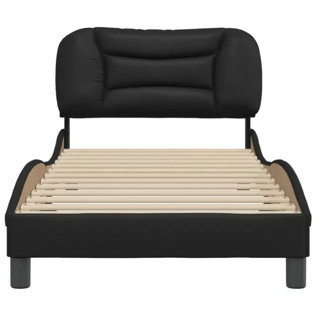 Zagotovite si boljši spanec s tem posteljnim okvirjem z vzglavjem! Je prijeten dodatek za vsako spalnico. Trpežno umetno usnje: Vrhunsko umetno usnje je zelo vzdržljiv material. Je odporno na madeže, zato ga lahko preprosto čistite z vlažno krpo. Gladka površina mu prav tako daje razkošen videz in lepoto pravega usnja.Letvice iz vezanega lesa: Letvice iz vezanega lesa omogočajo dobro porazdelitev teže in zagotavljajo, da vzmetnica ostane na mestu ob vsakem zasuku in obračanju med spanjem.Odlična podpora: Vzglavna stranica je napolnjena s PP vlakni za izjemno mehkobo in optimalno udobje ter zagotavlja odlično podporo hrbtu, ko sedite v postelji in berete ali gledate televizijo.Valovita stranica: Valoviti videz posteljnega okvirja je eleganten in prefinjen. Dekorju v vašem domu dodaja sodoben in eleganten pridih ter tako postane osrednja točka spalnice. Dobro je vedeti:Vzmetnica ni priložena tej postelji. Ponujamo različno izbiro ležišč. V naši trgovini si lahko ogledate ustrezne vzmetnice.Posteljni okvir z vzglavjem:Barva: ČrnaMaterial: Umetno usnje (75 % polivinilklorid, 5 % bombaž, 20 % poliester), kovina, trdna borovina, vezan lesCelotne dimenzije: 208 x 95 x 74,5 cm (D x Š x V)Velikost primerne vzmetnice: 90 x 190 cm (Š x D) (vzmetnica ni priložena)Oblazinjeno vzglavje:Barva: ČrnaMaterial: Umetno usnje (75 % polivinilklorid, 5 % bombaž, 20 % poliester)Material polnila: PP vlaknaDimenzije: 100 x 15 x 48 cm (D x Š x V)Primerna širina vzmetnice: 90 cmPotrebno sestavljanje: DaPaket vsebuje:1 x Posteljni okvir z vzglavjem1 x Oblazinjeno vzglavje