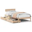 Zagotovite si boljši spanec s tem posteljnim okvirjem! Je prijeten dodatek za vsako spalnico. Stabilen in dolgotrajen okvir: Trdna borovina je znana po svoji trdnosti in trajnosti. Ravni vzorci in značilni vozli prispevajo k njenemu rustikalnemu čaru.Podnožje z letvami za optimalno podporo: Za podporo in zračnost ležišča je posteljni okvir opremljen z letvenim dnom.Popolnoma izkoriščen prostor: Ta posteljni okvir ima spodaj dva predala, ki omogočata shranjevanje predmetov, kot so dodatna posteljnina, sezonska oblačila in igrače.Preprosto manevriranje: Ta predal za shranjevanje pod posteljo ima štiri kolesa, ki zagotavljajo gladko in lahkotno manevriranje pri drsenju pod posteljo in izpod nje. Dobro je vedeti:Vzmetnica ni priložena tej postelji. Ponujamo različno izbiro ležišč. V naši trgovini si lahko ogledate ustrezne vzmetnice.Material: Trdna borovina (neobdelana)Potrebno sestavljanje: DaPostelja:Dimenzije: 206,5 x 95,5 x 70 cm (D x Š x V)Višina spalnega prostora, merjena od tal: 31 cmVišina prostora pod posteljo: 21 cmVelikost primerne vzmetnice: 90 x 200 cm (Š x D) (vzmetnica ni priložena)Največja nosilnost (z ležiščem): 100 kgZ letvenim podomPredal:Zunanje dimenzije: 95 x 55 x 16 cm (Š x G x V)Notranje dimenzije: 86,5 x 52,5 x 10 cm (Š x G x V)Maks. nosilnost (vsaka): 20 kgS štirimi kolesiPaket vsebuje:1 x Posteljni okvir z letvenim podnožjem2 x Predal