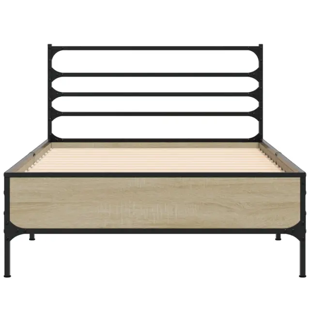 Zagotovite si boljši spanec s tem posteljnim okvirjem! Je prijeten dodatek za vsako spalnico. Vzdržljiv material: Inženirski les se ponaša z izjemno kakovostjo, gladko površino ter močjo, stabilnostjo in odpornostjo na vlago.Kovinske noge: Postelja je podprta s čvrstimi kovinskimi nogami, ki zagotavljajo njeno stabilnost, varnost in trdnost.Letvice iz vezanega lesa: Letvice iz vezanega lesa omogočajo dobro porazdelitev teže in zagotavljajo, da vzmetnica ostane na mestu ob vsakem zasuku in obračanju med spanjem.Odlična podpora: Vzglavje zagotavlja odlično oporo hrbtu, ko sedite v postelji in berete ali gledate televizijo. Dobro je vedeti:Vzmetnica ni priložena tej postelji. Ponujamo različno izbiro ležišč. V naši trgovini si lahko ogledate ustrezne vzmetnice.Barva: Sonoma hrastMaterial posteljnega okvirja: Inženirski les, kovinaMaterial letvic: Vezan lesCelotne dimenzije: 203 x 93 x 74 cm (D x Š x V)Velikost primerne vzmetnice: 90 x 200 cm (Š x D) (vzmetnica ni priložena)Maksimalna nosilnost: 100 kgPotrebno sestavljanje: Da