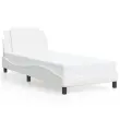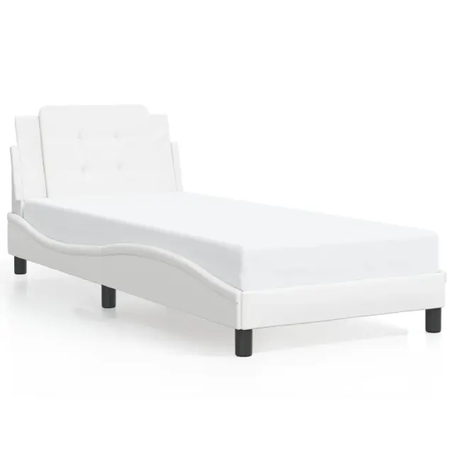 Zagotovite si boljši spanec s tem posteljnim okvirjem z vzglavjem! Je prijeten dodatek za vsako spalnico. Trpežno umetno usnje: Vrhunsko umetno usnje je zelo vzdržljiv material. Je odporno na madeže, zato ga lahko preprosto čistite z vlažno krpo. Gladka površina mu prav tako daje razkošen videz in lepoto pravega usnja.Letvice iz vezanega lesa: Letvice iz vezanega lesa omogočajo dobro porazdelitev teže in zagotavljajo, da vzmetnica ostane na mestu ob vsakem zasuku in obračanju med spanjem.Odlična podpora: Vzglavna stranica je napolnjena s peno za izjemno mehkobo in optimalno udobje ter zagotavlja odlično podporo hrbtu, ko sedite v postelji in berete ali gledate televizijo.Priročna zasnova: Oblazinjeno vzglavje ima zadrgo za enostavno namestitev.Valovita stranica: Valoviti videz posteljnega okvirja je eleganten in prefinjen. Dekorju v vašem domu dodaja sodoben in eleganten pridih ter tako postane osrednja točka spalnice. Dobro je vedeti:Vzmetnica ni priložena tej postelji. Ponujamo različno izbiro ležišč. V naši trgovini si lahko ogledate ustrezne vzmetnice.Posteljni okvir z vzglavjem:Barva: BelaMaterial: Umetno usnje (75 % polivinilklorid, 5 % bombaž, 20 % poliester), kovina, trdna borovina, vezan les, inženirski lesCelotne dimenzije: 218 x 85 x 74,5 cm (D x Š x V)Velikost primerne vzmetnice: 80 x 200 cm (Š x D) (vzmetnica ni priložena)Oblazinjeno vzglavje:Barva: BelaMaterial: Umetno usnje (75 % polivinilklorid, 5 % bombaž, 20 % poliester)Material polnila: PenaDimenzije: 80 x 3 x 48 cm (D x Š x V)Širina primerne vzmetnice: 80 cmPotrebno sestavljanje: DaPaket vsebuje:1 x Posteljni okvir z vzglavjem1 x Oblazinjeno vzglavje
