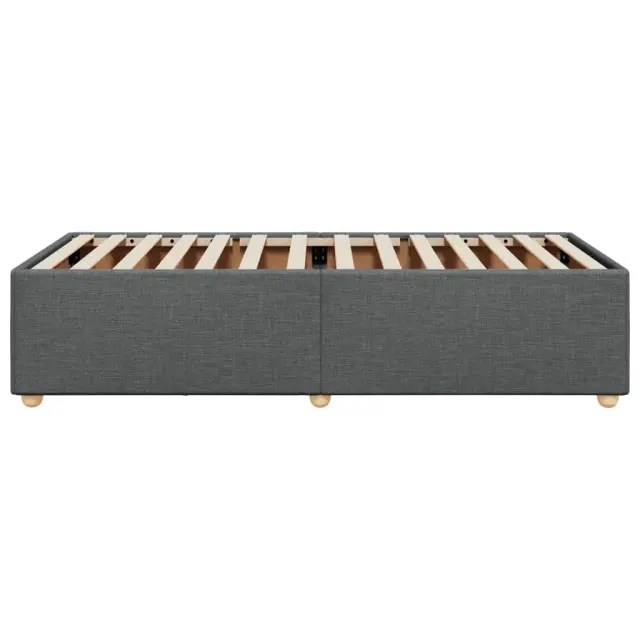Zagotovite si boljši spanec s tem posteljnim okvirjem! Je prijeten dodatek za vsako spalnico. Mehak in trpežen material: Tkanina iz poliestra združuje mehkobo, zračnost in trpežnost ter vam zagotavlja popolno udobje in prijetnost.Letvice za optimalno podporo: Ta posteljni okvir je opremljen z letvicami, ki zagotavljajo osnovno podporo in zračnost vašega ležišča.Stabilne in vzdržljive noge: Ta postelja je podprta z robustnimi nogami, ki zagotavljajo stabilnost, varnost in trdnost. Dobro je vedeti:Vzmetnica ni priložena tej postelji. Ponujamo različno izbiro ležišč. V naši trgovini si lahko ogledate ustrezne vzmetnice.Barva: Temno sivaMaterial: Blago (100 % poliester), vezan les, konstruiran lesDimenzije: 200 x 90 x 46 cm (D x Š x V)Velikost primerne vzmetnice: 90 x 200 cm (Š x D) (vzmetnica ni priložena)Utrjene plastične nogicePotrebno sestavljanje: Da