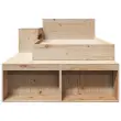 Zagotovite si boljši spanec s tem posteljnim okvirjem! Je prijeten dodatek za vsako spalnico. Stabilen in dolgotrajen okvir: Trdna borovina je znana po svoji trdnosti in trajnosti. Ravni vzorci in značilni vozli prispevajo k njenemu rustikalnemu čaru.Podnožje z letvami za optimalno podporo: Za podporo in zračnost ležišča je posteljni okvir opremljen z letvenim dnom.Prostorno shranjevanje pod posteljo: Ta posteljni okvir je zasnovan tako, da je pod njim dovolj prostora za škatle, košare, predale in drugo.Večnamenska nočna omarica: Ta vsestranska nočna omarica združuje shranjevalno enoto z mizo, s čimer ustvarja popoln delovni prostor in zagotavlja dovolj prostora za shranjevanje vseh potrebščin pred spanjem.Varčevanje s prostorom: Ta omara za shranjevanje v obliki črke L se tesno prilega postelji in tako ustvari delno ogrado, ki povečuje prostor v spalnici. To je idealna izbira za manjše ali bolj omejene prostore. Dobro je vedeti:Vzmetnica ni priložena tej postelji. Ponujamo različno izbiro ležišč. V naši trgovini si lahko ogledate ustrezne vzmetnice.Material: Trdna borovina (neobdelana)Potrebno sestavljanje: DaPosteljni okvir z vzglavjem:Dimenzije: 193,5 x 78,5 x 91 cm (D x Š x V)Višina spalnega prostora od tal: 58,5 cmVišina prostora pod posteljo: 40,5 cmVelikost primerne vzmetnice: 75 x 190 cm (Š x D) (vzmetnica ni priložena)Največja nosilnost (z ležiščem): 100 kgZ letvenim podomNočna omarica s pisalno mizo:Celotne dimenzije: 222 x 107 x 75 cm (D x Š x V)Dimenzije mize: 96,5 x 29 x 75 cm (D x Š x V)Dimenzije omarice za shranjevanje: 92 x 107 x 40,5 cm (Š x G x V)Število prostorov: 4S pisalno mizoZasnova v obliki črke LPaket vsebuje:1 x Posteljni okvir z vzglavjem1 x Nočna omarica z mizo