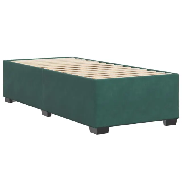 Zagotovite si boljši spanec s tem posteljnim okvirjem! Je prijeten dodatek za vsako spalnico. Mehak in udoben material: Vlažna tkanina iz žameta ima mehko in gladko površino, ki zagotavlja prijeten občutek ter vam zagotavlja toploto in popolno udobje.Letvice za optimalno podporo: Ta posteljni okvir je opremljen z letvicami, ki zagotavljajo osnovno podporo in zračnost vašega ležišča.Stabilne in vzdržljive noge: Ta postelja je podprta z robustnimi nogami, ki zagotavljajo stabilnost, varnost in trdnost. Dobro je vedeti:Vzmetnica ni priložena tej postelji. Ponujamo različno izbiro ležišč. V naši trgovini si lahko ogledate ustrezne vzmetnice.Barva: Temno zelenaMaterial: Žamet (100 % poliester), vezan les, konstruiran lesDimenzije: 200 x 90 x 46 cm (D x Š x V)Velikost primerne vzmetnice: 90 x 200 cm (Š x D) (vzmetnica ni priložena)Utrjene plastične nogicePotrebno sestavljanje: Da
