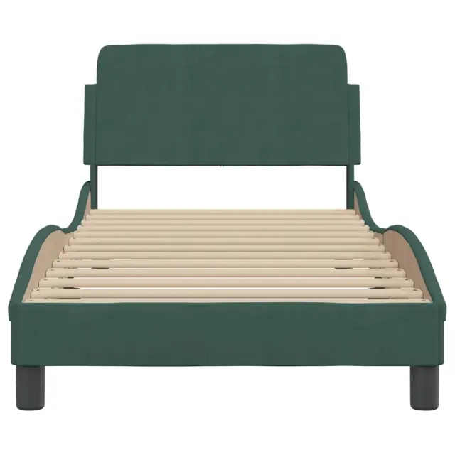 Zagotovite si boljši spanec s tem posteljnim okvirjem z vzglavjem! Je prijeten dodatek za vsako spalnico. Mehak žamet: Žamet je mehka in udobna tkanina, ki je prijetna do kože.Podporne noge: Postelja je podprta s čvrstimi nogami, ki zagotavljajo njeno stabilnost, varnost in trdnost.Letvice iz vezanega lesa: Letvice iz vezanega lesa omogočajo dobro porazdelitev teže in zagotavljajo, da vzmetnica ostane na mestu ob vsakem zasuku in obračanju med spanjem.Udobna opora: To vzglavje za posteljo vam zagotavlja odlično oporo za hrbet, ko sedite na postelji in berete ali gledate filme.Valovita stranica: Valoviti videz posteljnega okvirja je eleganten in prefinjen. Dekorju v vašem domu dodaja sodoben in eleganten pridih ter tako postane osrednja točka spalnice. Dobro je vedeti:Vzmetnica ni priložena tej postelji. Ponujamo različno izbiro ležišč. V naši trgovini si lahko ogledate ustrezne vzmetnice.Barva: Temno zelenaMaterial: Žamet (100 % poliester), kovina, vezan les, inženirski lesCelotne dimenzije: 218 x 95 x 74,5 cm (D x Š x V)Velikost primerne vzmetnice: 90 x 200 cm (Š x D) (vzmetnica ni priložena)Potrebno sestavljanje: Da