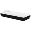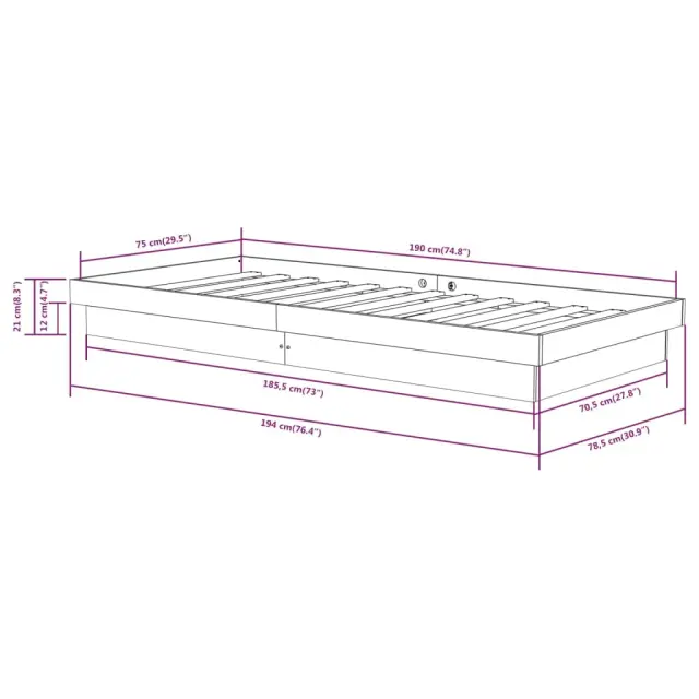 Ta leseni posteljni okvir je popoln za miren spanec. Na praktičen način polepša notranjost vašega doma. Vrhunski material: trdna borovina je čudovit naravni material. Borovina ima ravne vzorce, grče pa dajejo materialu njegov značilen, rustikalen videz.Rustikalni čar: Postelja daje vašemu prostoru rustikalne podtone, ki so lahko resnično sproščujoči. Pomirjujoč učinek tega lesenega posteljnega okvirja spremeni katero koli spalnico ali sobo za goste v pomirjujoč prostor, hkrati pa v prostor doda naravni element.Trdne letvice: Letvice iz vezanega lesa omogočajo dobro porazdelitev teže in zagotavljajo, da vzmetnica ostane na mestu ob vsakem zasuku in obračanju med spanjem. Opomba:Paket vsebuje samo posteljni okvir. Vzmetnica ni priložena. V naši trgovini si lahko ogledate ustrezne vzmetnice.Ta posteljni okvir je primeren za vzmetnico velikosti 75 x 190 cm (2FT6 Small Single).Barva: ČrnaMaterial: Trdna borovinaCelotne dimenzije: 194 x 78,5 x 21 cm (D x Š x V)Velikost primerne vzmetnice: 75 x 190 cm (Š x D) (2FT6 Small Single) (vzmetnica ni priložena)Potrebno sestavljanje: Da