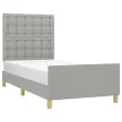 Zagotovite si boljši spanec s tem posteljnim okvirjem z vzglavjem! Je prijeten dodatek za vsako spalnico. Trpežno blago: Blago zagotavlja preprost in čist videz, poleg tega pa je zračno in trpežno.Nastavljiva višina: Vzglavje postelje je nastavljivo po višini po vaših željah.Podporne noge: Postelja je podprta s čvrstimi nogami, ki zagotavljajo njeno stabilnost, varnost in trdnost.Letvice iz vezanega lesa: Letvice iz vezanega lesa omogočajo dobro porazdelitev teže in zagotavljajo, da vzmetnica ostane na mestu ob vsakem zasuku in obračanju med spanjem.Udobna opora: To vzglavje za posteljo vam zagotavlja odlično oporo za hrbet, ko sedite na postelji in berete ali gledate filme. Opomba:Paket vsebuje samo posteljni okvir. Vzmetnica ni priložena. V naši trgovini si lahko ogledate ustrezne vzmetnice.Vsakemu izdelku je priložen priročnik za enostavno sestavljanje.Barva: Svetlo sivaMaterial: Blago (100 % poliester), trden macesnov les, vezan les, inženirski lesMaterial polnila: PenaCelotne dimenzije: 193 x 93 x 118/128 cm (D x Š x V)Velikost primerne vzmetnice: 90 x 190 cm (Š x D) (vzmetnica ni priložena)Paket vsebuje:1 x Posteljni okvir z vznožjem1 x Vzglavje