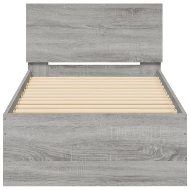 Zagotovite si boljši spanec s tem posteljnim okvirjem z vzglavjem! Je prijeten dodatek za vsako spalnico. Vzdržljiv material: Inženirski les se ponaša z izjemno kakovostjo, gladko površino ter močjo, stabilnostjo in odpornostjo na vlago.Odlična opora: Posteljno vzglavje vam zagotavlja odlično oporo za hrbet, medtem ko sedite v postelji in berete ali gledate televizijo.Trdne letvice: Letvice iz vezanega lesa omogočajo dobro porazdelitev teže in zagotavljajo, da vzmetnica ostane na mestu ob vsakem zasuku in obračanju med spanjem. Dobro je vedeti:Vzmetnica ni priložena tej postelji. Ponujamo različno izbiro ležišč. V naši trgovini si lahko ogledate ustrezne vzmetnice.Barva: Siva sonomaMaterial posteljnega okvirja: Inženirski lesMaterial letvic: Vezan lesCelotne dimenzije: 193 x 80 x 70 cm (D x Š x V)Velikost primerne vzmetnice: 75 x 190 cm (Š x D) (vzmetnica ni priložena)Potrebno sestavljanje: Da