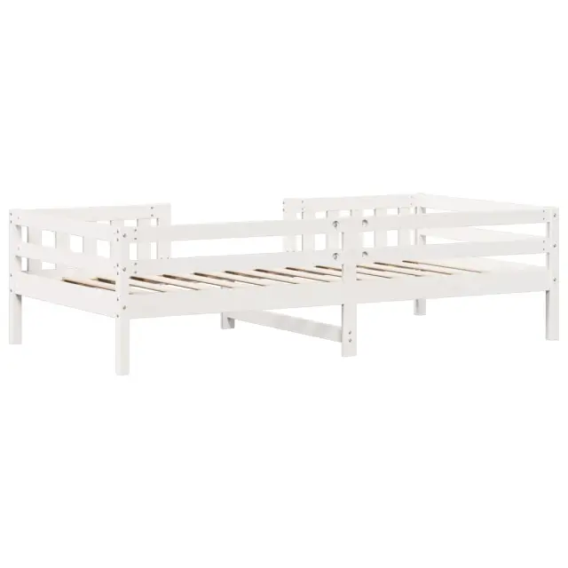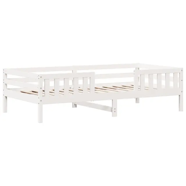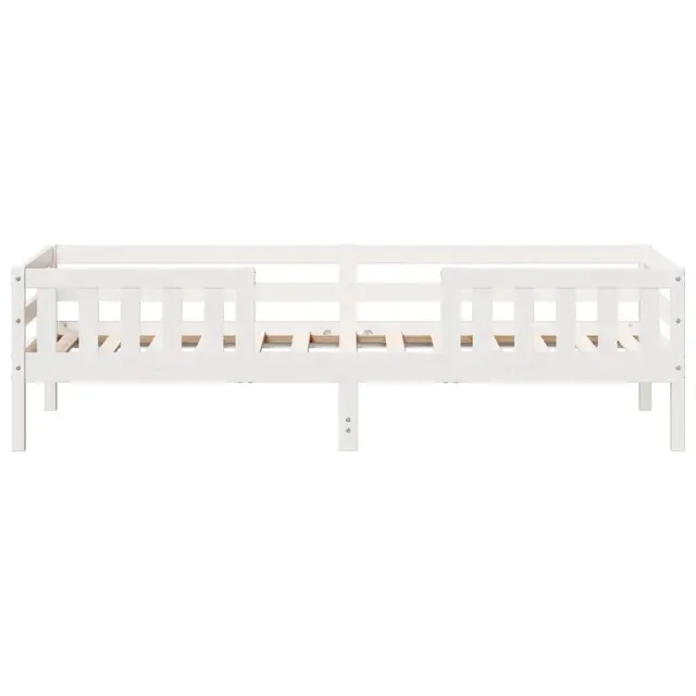 Dodajte svoji spalnici moderen pridih s tem posteljnim okvirjem! Je praktičen in dekorativen dodatek vašemu bivalnemu prostoru. Stabilen in dolgotrajen okvir: Trdna borovina je znana po svoji trdnosti in trajnosti. Ravni vzorci in značilni vozli prispevajo k njenemu rustikalnemu čaru.Letvice iz vezanega lesa: Letvice iz vezanega lesa omogočajo dobro porazdelitev teže in zagotavljajo, da vzmetnica ostane na mestu ob vsakem zasuku in obračanju med spanjem.Moderna zasnova: Svojim notranjim prostorom dodajte moderen stil! Moderen stil notranjih prostorov vključuje čiste linije, minimalističen videz in naravno svetlobo. Dobro je vedeti:Vzmetnica ni priložena tej postelji. Ponujamo različno izbiro ležišč. V naši trgovini si lahko ogledate ustrezne vzmetnice.Barva: BelaMaterial: Trdna borovinaMaterial letvic: Vezan lesCelotne dimenzije: 205,5 x 85,5 x 56 cm (D x Š x V)Velikost primerne vzmetnice: 80 x 200 cm (Š x D) (vzmetnica ni priložena)Potrebno sestavljanje: Da OPOZORILO. Otroške postelje ne postavljajte v bližino virov toplote, oken in drugega pohištva. OPOZORILO. Otroške postelje ne uporabljajte, če je kateri koli del zlomljen, strgan ali manjka.
