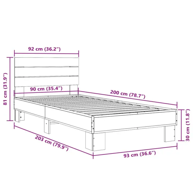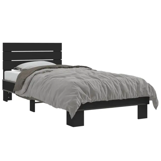 Zagotovite si boljši spanec s tem posteljnim okvirjem! Je prijeten dodatek za vsako spalnico. Vzdržljiv material: Inženirski les se ponaša z izjemno kakovostjo, gladko površino ter močjo, stabilnostjo in odpornostjo na vlago.Kovinske noge: Postelja je podprta s čvrstimi kovinskimi nogami, ki zagotavljajo njeno stabilnost, varnost in trdnost.Letvice iz vezanega lesa: Letvice iz vezanega lesa omogočajo dobro porazdelitev teže in zagotavljajo, da vzmetnica ostane na mestu ob vsakem zasuku in obračanju med spanjem.Odlična podpora: Vzglavje zagotavlja odlično oporo hrbtu, ko sedite v postelji in berete ali gledate televizijo. Dobro je vedeti:Vzmetnica ni priložena tej postelji. Ponujamo različno izbiro ležišč. V naši trgovini si lahko ogledate ustrezne vzmetnice.Barva: ČrnaMaterial posteljnega okvirja: Inženirski les, kovinaMaterial letvic: Vezan lesCelotne dimenzije: 203 x 93 x 81 cm (D x Š x V)Velikost primerne vzmetnice: 90 x 200 cm (Š x D) (vzmetnica ni priložena)Maksimalna nosilnost: 100 kgPotrebno sestavljanje: Da