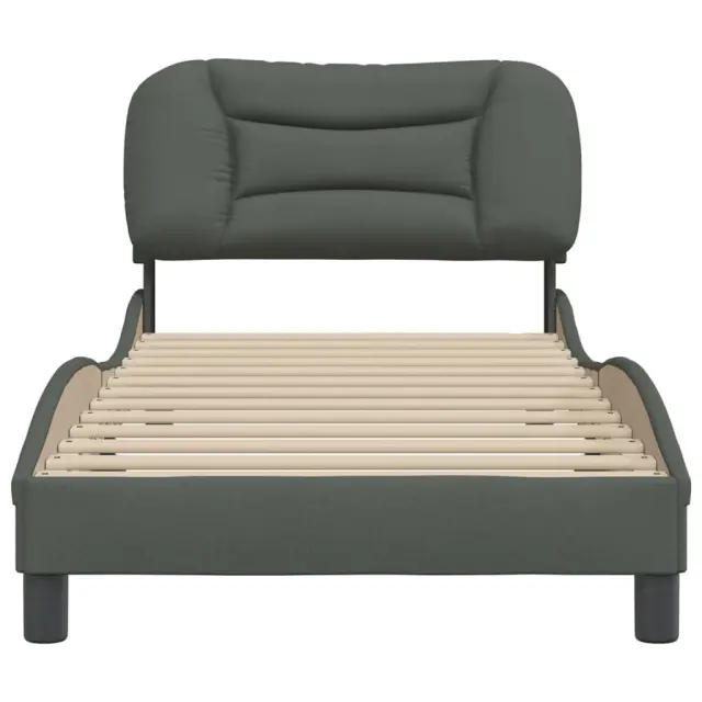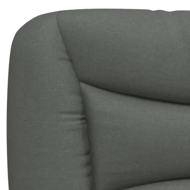 Zagotovite si boljši spanec s tem posteljnim okvirjem z vzglavjem! Je prijeten dodatek za vsako spalnico. Tkanina z dolgo življenjsko dobo: Tkanina je preprostega in čistega videza, hkrati pa je zračna, prijazna do kože in vzdržljiva.Letvice iz vezanega lesa: Letvice iz vezanega lesa omogočajo dobro porazdelitev teže in zagotavljajo, da vzmetnica ostane na mestu ob vsakem zasuku in obračanju med spanjem.Odlična podpora: Vzglavna stranica je napolnjena s PP vlakni za izjemno mehkobo in optimalno udobje ter zagotavlja odlično podporo hrbtu, ko sedite v postelji in berete ali gledate televizijo.Priročna zasnova: Vzglavna stranica ima zadrgo za preprosto namestitev, pripenjala na zadnji strani pa se lahko uporabijo za pritrditev LED lučk.Valovita stranica: Valoviti videz posteljnega okvirja je eleganten in prefinjen. Dekorju v vašem domu dodaja sodoben in eleganten pridih ter tako postane osrednja točka spalnice. Dobro je vedeti:Vzmetnica ni priložena tej postelji. Ponujamo različno izbiro ležišč. V naši trgovini si lahko ogledate ustrezne vzmetnice.Posteljni okvir z vzglavjem:Barva: Temno sivaMaterial: Tkanina (100 % poliester), kovina, trdna borovina, vezan les, inženirski lesCelotne dimenzije: 218 x 95 x 74,5 cm (D x Š x V)Velikost primerne vzmetnice: 90 x 200 cm (Š x D) (vzmetnica ni priložena)Oblazinjeno vzglavje:Barva: Temno sivaMaterial: Blago (100 % poliester)Material polnila: PP vlaknaDimenzije: 100 x 15 x 48 cm (D x Š x V)Primerna širina vzmetnice: 90 cmPotrebno sestavljanje: DaPaket vsebuje:1 x Posteljni okvir z vzglavjem1 x Oblazinjeno vzglavje