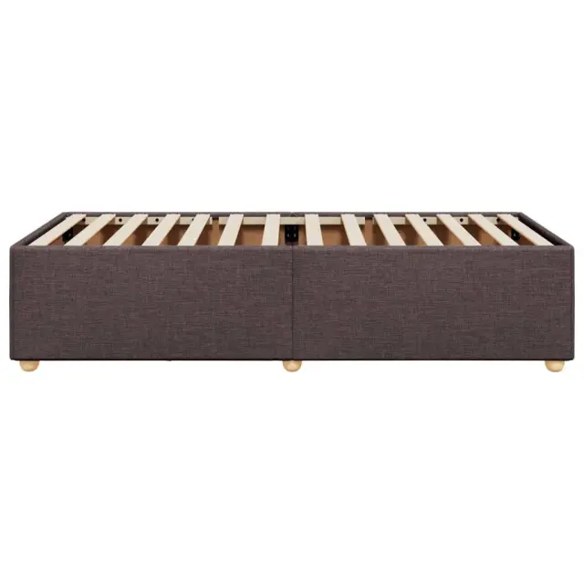 Zagotovite si boljši spanec s tem posteljnim okvirjem! Je prijeten dodatek za vsako spalnico. Mehak in trpežen material: Tkanina iz poliestra združuje mehkobo, zračnost in trpežnost ter vam zagotavlja popolno udobje in prijetnost.Letvice za optimalno podporo: Ta posteljni okvir je opremljen z letvicami, ki zagotavljajo osnovno podporo in zračnost vašega ležišča.Stabilne in vzdržljive noge: Ta postelja je podprta z robustnimi nogami, ki zagotavljajo stabilnost, varnost in trdnost. Dobro je vedeti:Vzmetnica ni priložena tej postelji. Ponujamo različno izbiro ležišč. V naši trgovini si lahko ogledate ustrezne vzmetnice.Barva: Temno rjavaMaterial: Blago (100 % poliester), vezan les, konstruiran lesDimenzije: 200 x 80 x 46 cm (D x Š x V)Velikost primerne vzmetnice: 80 x 200 cm (Š x D) (vzmetnica ni priložena)Utrjene plastične nogicePotrebno sestavljanje: Da