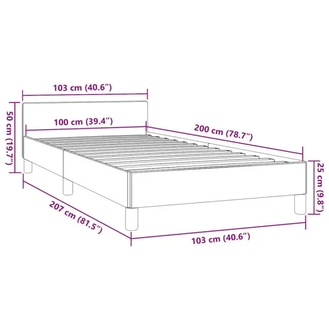 Zagotovite si boljši spanec s tem posteljnim okvirjem z vzglavjem! Je prijeten dodatek za vsako spalnico. Trpežno blago: Blago zagotavlja preprost in čist videz, poleg tega pa je zračno in trpežno.Podporne noge: Postelja je podprta s čvrstimi nogami, ki zagotavljajo njeno stabilnost, varnost in trdnost.Letvice iz vezanega lesa: Letvice iz vezanega lesa omogočajo dobro porazdelitev teže in zagotavljajo, da vzmetnica ostane na mestu ob vsakem zasuku in obračanju med spanjem. Opomba:Paket vsebuje samo posteljni okvir. Vzmetnica ni priložena. V naši trgovini si lahko ogledate ustrezne vzmetnice.Vsakemu izdelku je priložen priročnik za enostavno sestavljanje. Dobro je vedeti:Zaradi varčevanja s prostorom so nekateri deli ali blazine zapakirani v notranjost pohištva - preverite, ali so v predalih z zadrgo ali pod prevleko sedeža skriti kakšni sestavni deli.Barva: ČrnaMaterial: Blago (100 % poliester), vezan les, konstruiran lesCelotne dimenzije: 207 x 103 x 50 cm (D x Š x V)Velikost primerne vzmetnice: 100 x 200 cm (Š x D) (vzmetnica ni priložena)