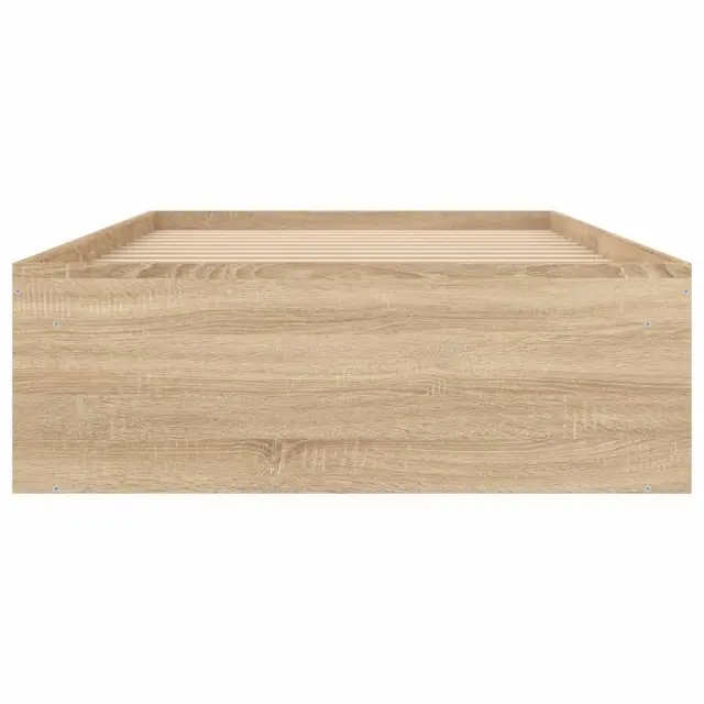 Ustvarite moderno spalnico s tem posteljnim okvirjem! To bo praktičen in okrasen dodatek za vaše notranje prostore. Vzdržljiv material: Inženirski les se ponaša z izjemno kakovostjo, gladko površino ter močjo, stabilnostjo in odpornostjo na vlago.Letvice iz vezanega lesa: Letvice iz vezanega lesa omogočajo dobro porazdelitev teže in zagotavljajo, da vzmetnica ostane na mestu ob vsakem zasuku in obračanju med spanjem.Dodaten prostor za shranjevanje: Postelja za goste ima skupno 6 predelkov na obeh straneh postelje za shranjevanje stvari, kot so knjige, lončnice in drugi okraski. Dobro je vedeti:Vzmetnica ni priložena tej postelji. Ponujamo različno izbiro ležišč. V naši trgovini si lahko ogledate ustrezne vzmetnice.Barva: Sonoma hrastMaterial posteljnega okvirja: Inženirski les, trdna borovinaMaterial letvic: Vezan lesCelotne dimenzije: 193 x 93 x 35 cm (D x Š x V)Primerna velikost vzmetnice (vzmetnica ni vključena): 90 x 190 cm (Š x D)Potrebno sestavljanje: Da