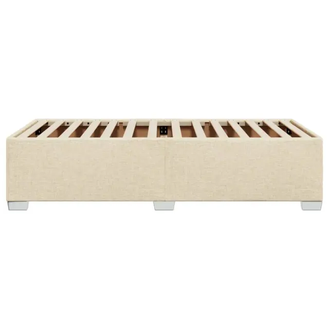 Zagotovite si boljši spanec s tem posteljnim okvirjem! Je prijeten dodatek za vsako spalnico. Mehak in trpežen material: Tkanina iz poliestra združuje mehkobo, zračnost in trpežnost ter vam zagotavlja popolno udobje in prijetnost.Letvice za optimalno podporo: Ta posteljni okvir je opremljen z letvicami, ki zagotavljajo osnovno podporo in zračnost vašega ležišča.Stabilne in vzdržljive noge: Ta postelja je podprta z robustnimi nogami, ki zagotavljajo stabilnost, varnost in trdnost. Dobro je vedeti:Vzmetnica ni priložena tej postelji. Ponujamo različno izbiro ležišč. V naši trgovini si lahko ogledate ustrezne vzmetnice.Barva: KremMaterial: Blago (100 % poliester), vezan les, konstruiran lesDimenzije: 200 x 100 x 46 cm (D x Š x V)Velikost primerne vzmetnice: 100 x 200 cm (Š x D) (vzmetnica ni priložena)Utrjene plastične nogicePotrebno sestavljanje: Da